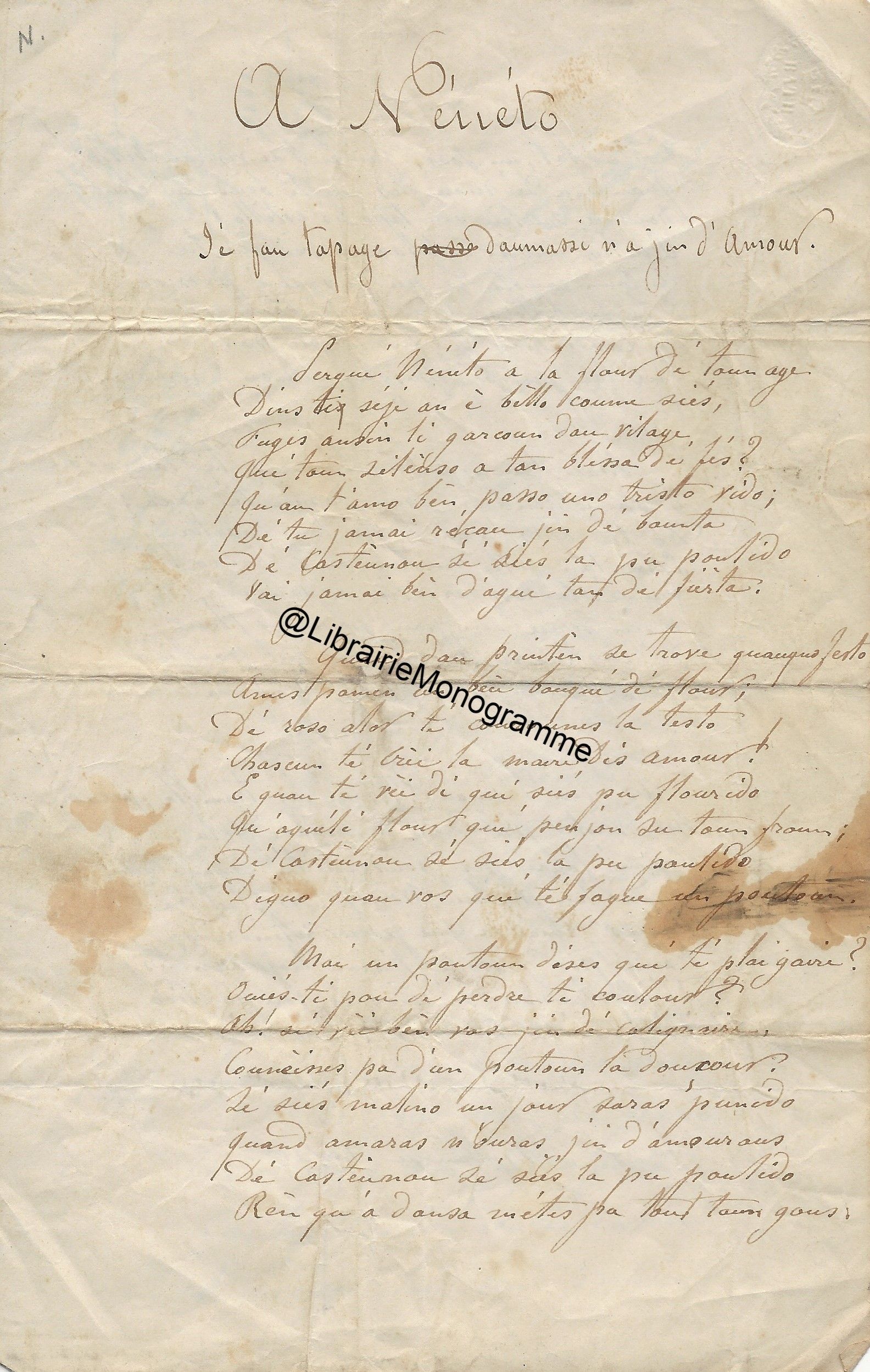 Ancienne collection du chansonnier Marius Réty, ami de Verlaine.