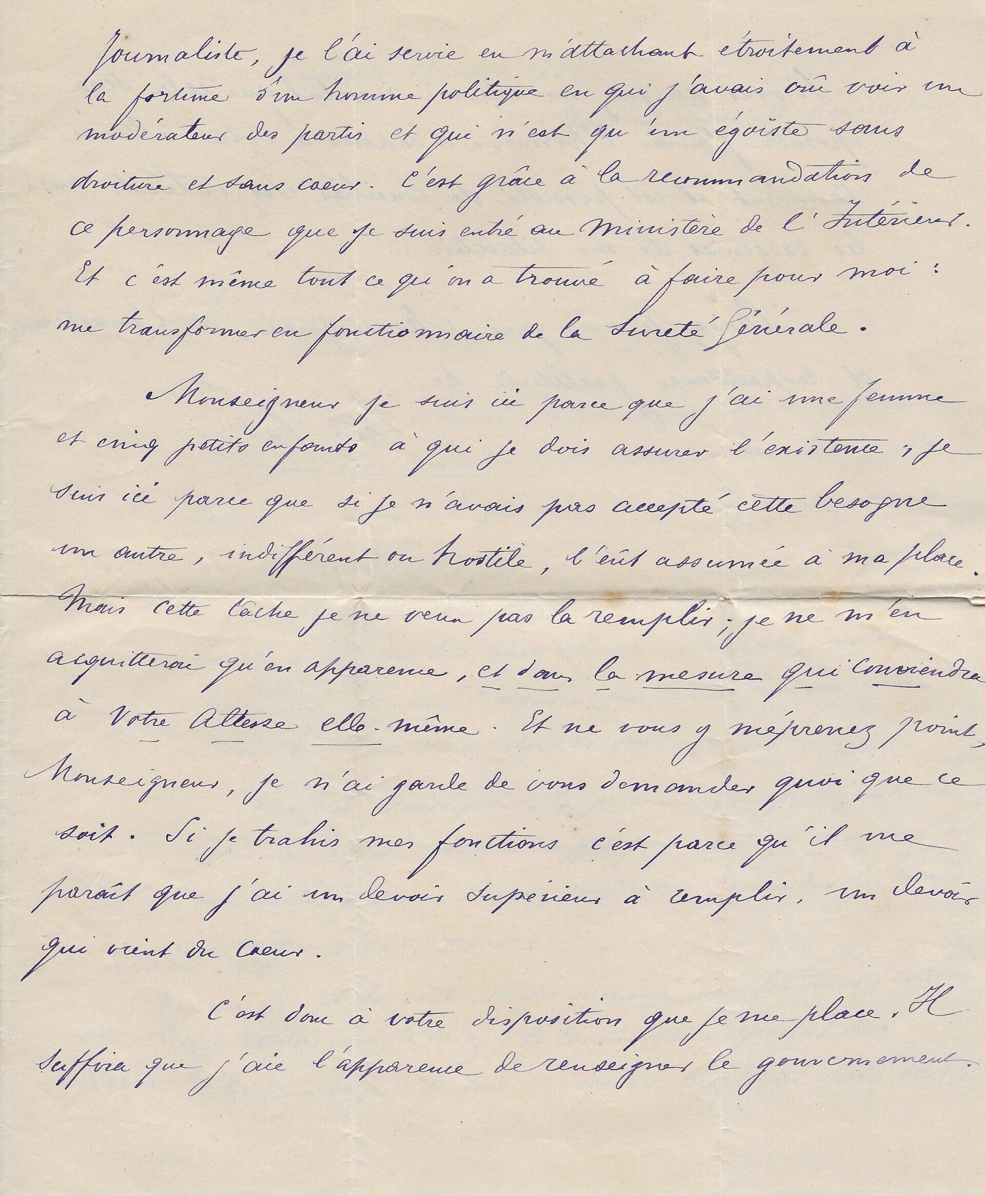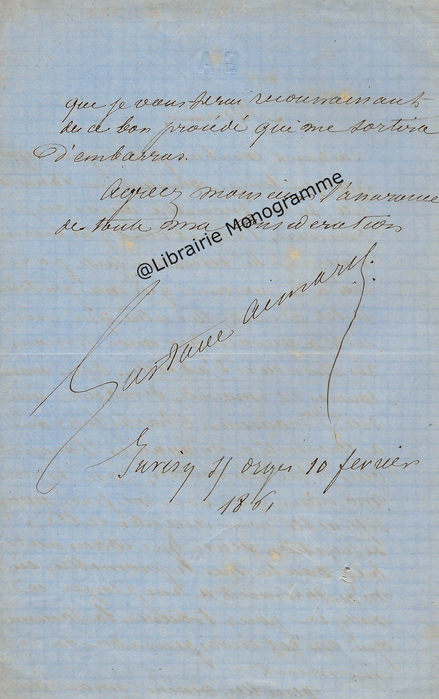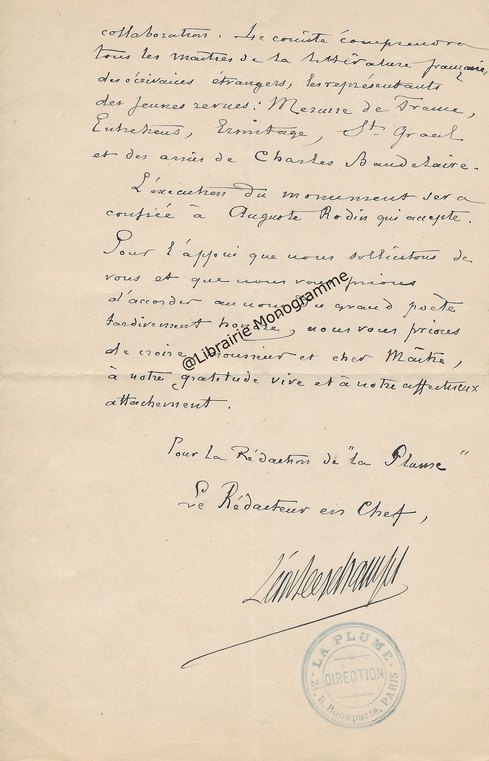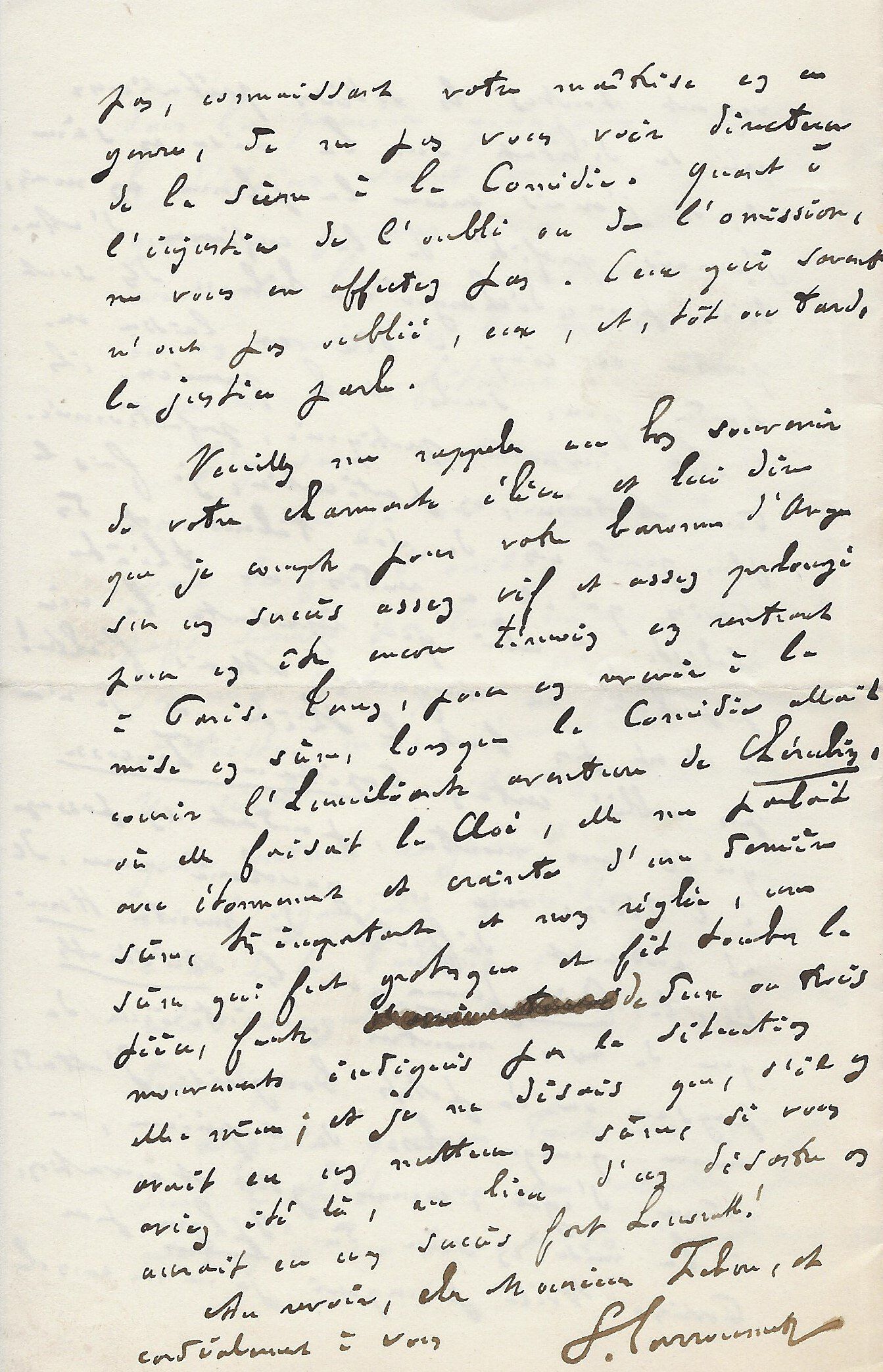 Il lui demande de ne pas accepter l’opposition faite par Mr Bousquié fils négociant à Bordeaux, opposition faite sur le roman « que j’ai à votre journal. Je compte sur votre bonne amitié pour ne pas recevoir cette opposition et faire valoir la cession faite par moi à Monsieur Legrand, cession que je vous ai fait signifier et que vous avez entre les mains. Je puis y compter n’est ce pas ?... ».