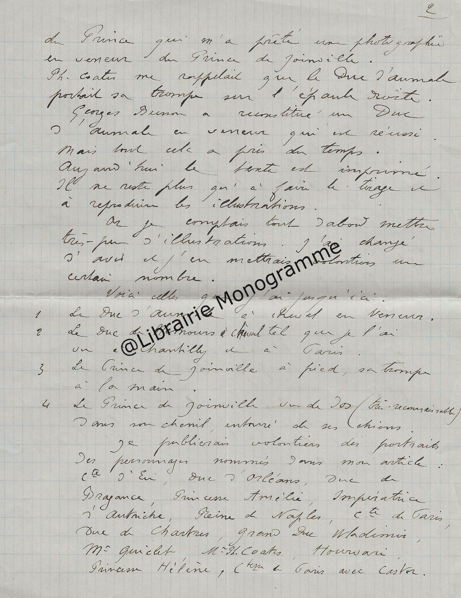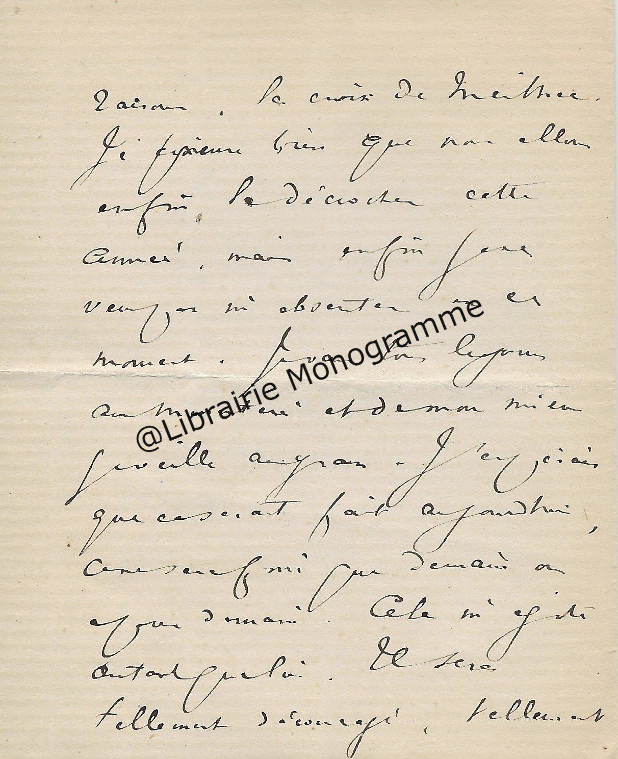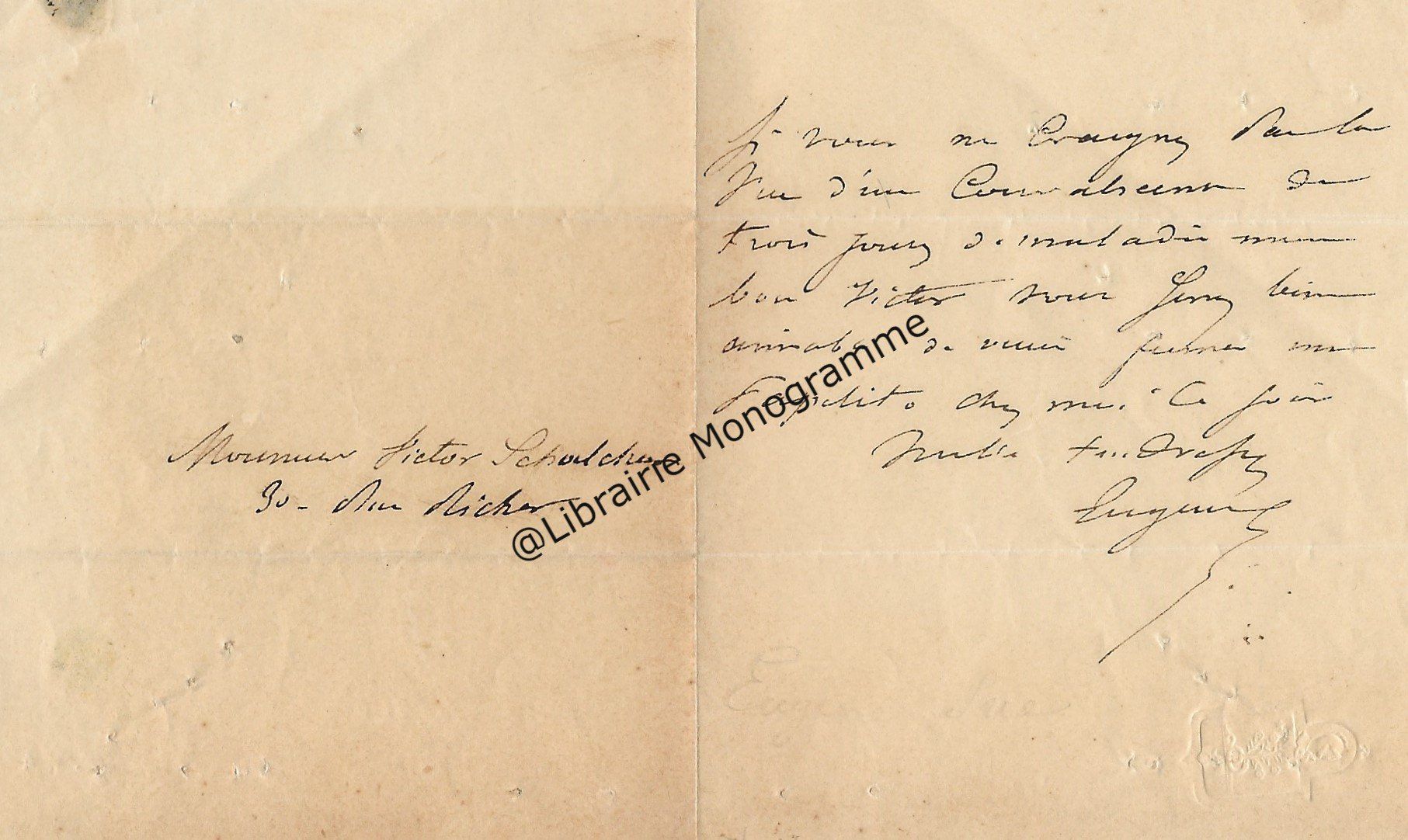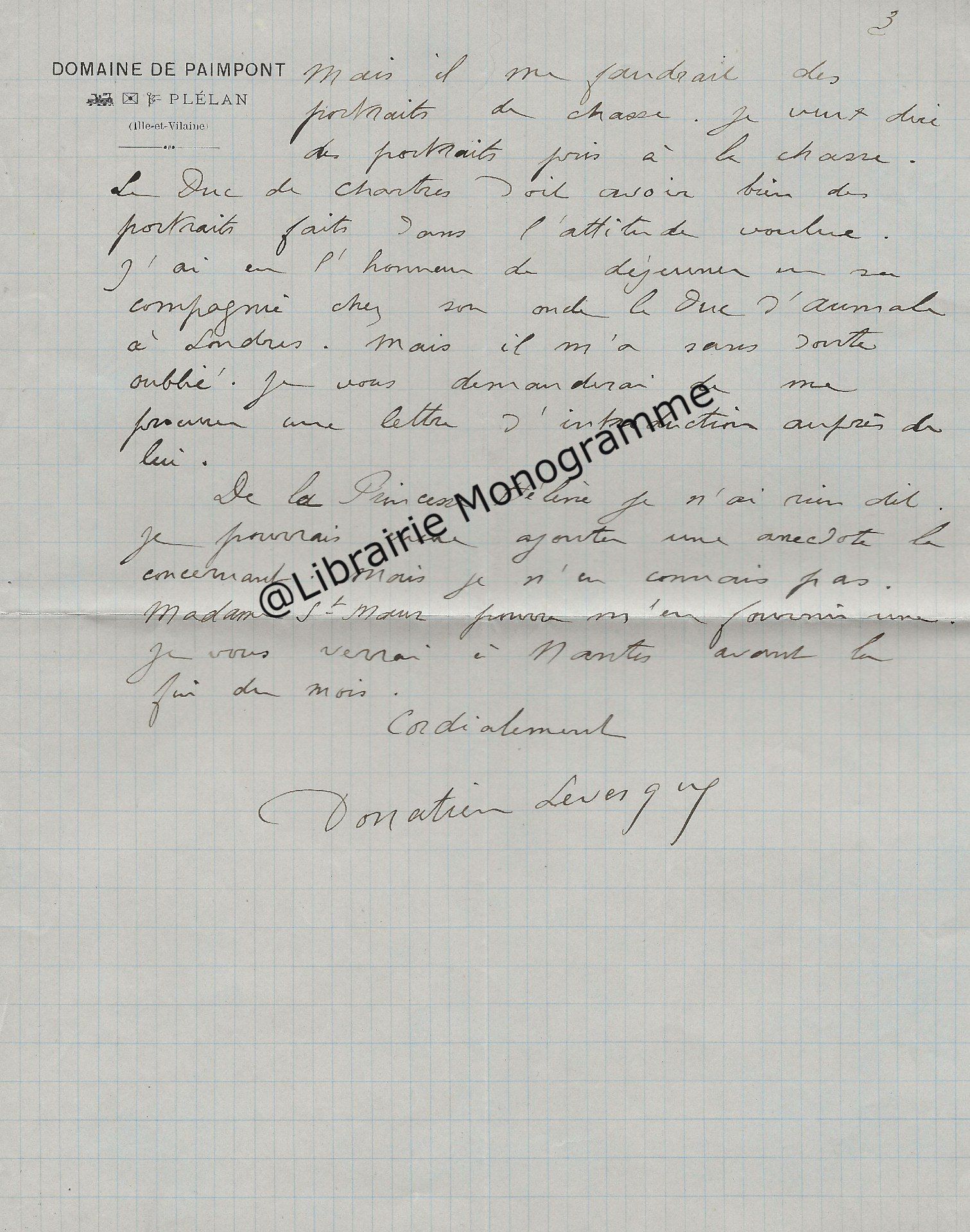 Son ami « Mr de la Grange » l’a averti que le comte avait « quelque communication » à lui faire. « Ecrivez moi quel sera quel quart d’heure du matin ou du soir que vous pourrez me donner chez vous rue Cassette et je le saisirai au passage pour vous aller trouver. J’ai voulu attendre que vous fussiez un peu dégagé de tous ce qu’entraine un mariage qui a dû vous apporter une consolation après une grande douleur… ».