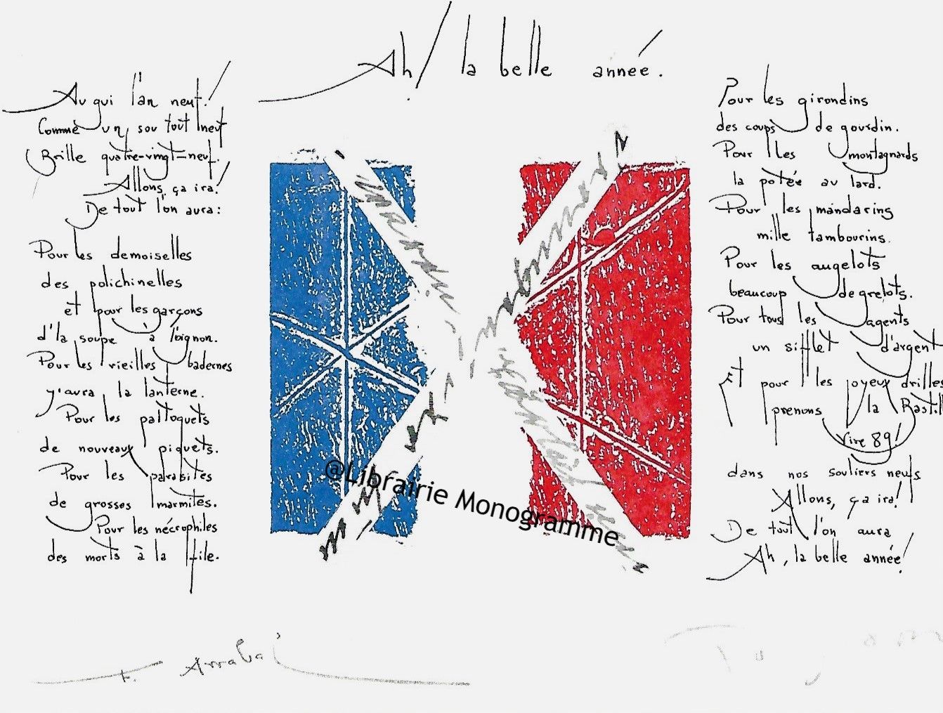 La carte postale du Bicentenaire de la Révolution Française, représentée au dos est une œuvre collective de Patrice Pouperon (collage) et de Fernando Arrabal « Ah ! la belle année ».