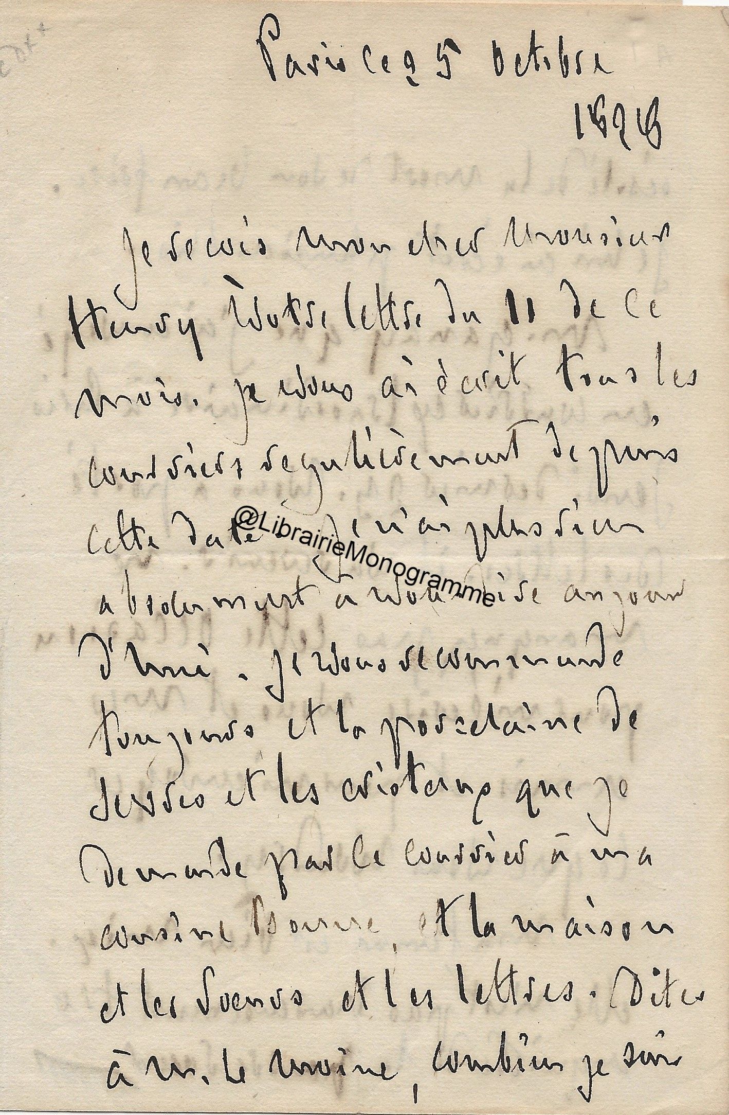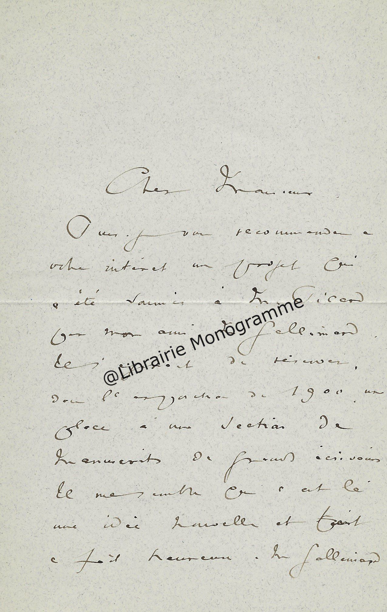 Lettre autographe signée. Paris, 5 Octobre 1900. 2 pp. in-16.