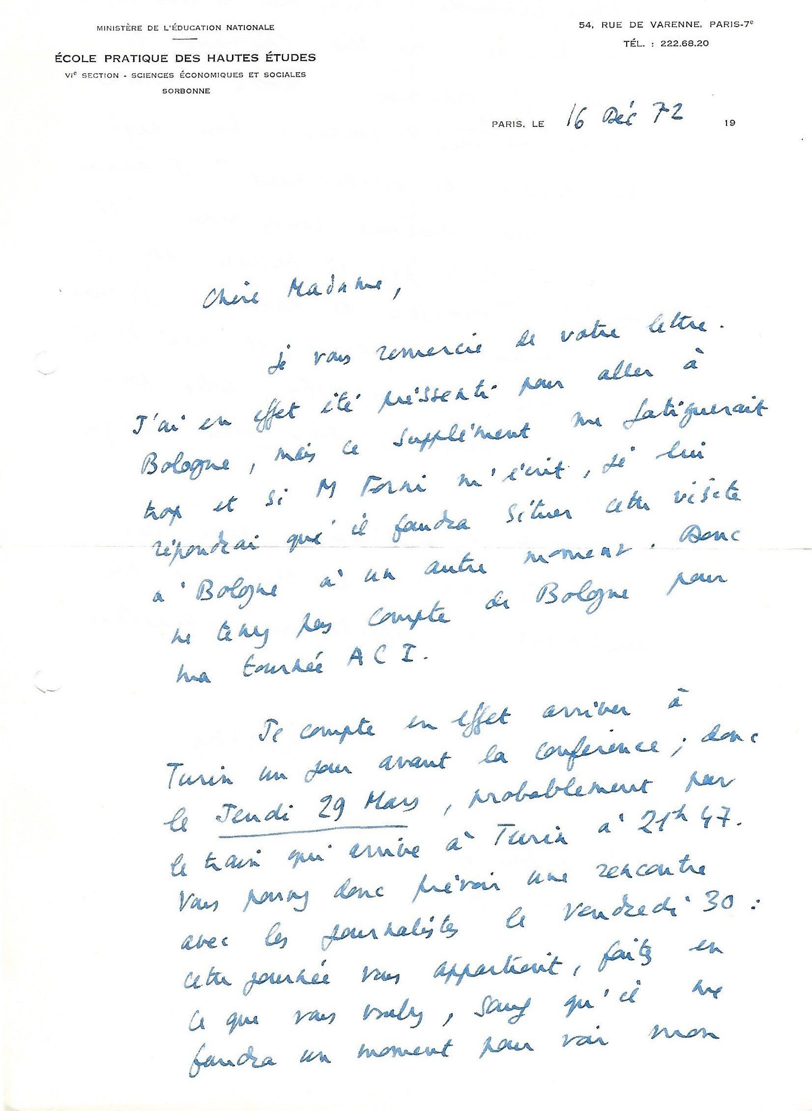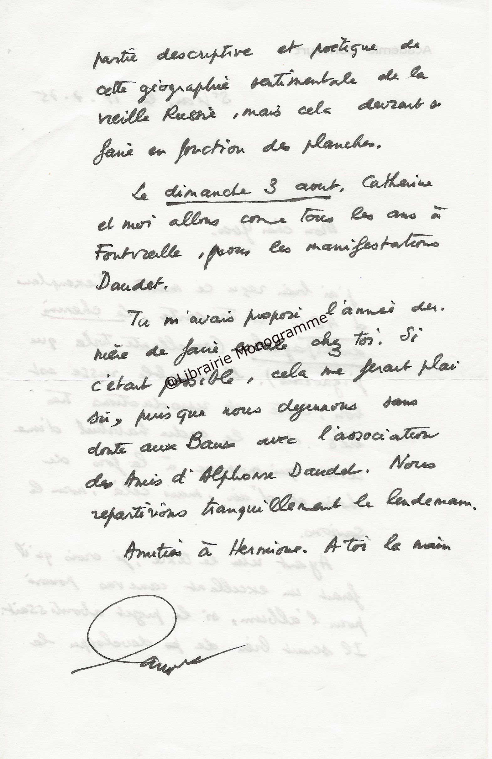 Lettre autographe signée à une dame. 21 mars 1964. 1 p. in-8.