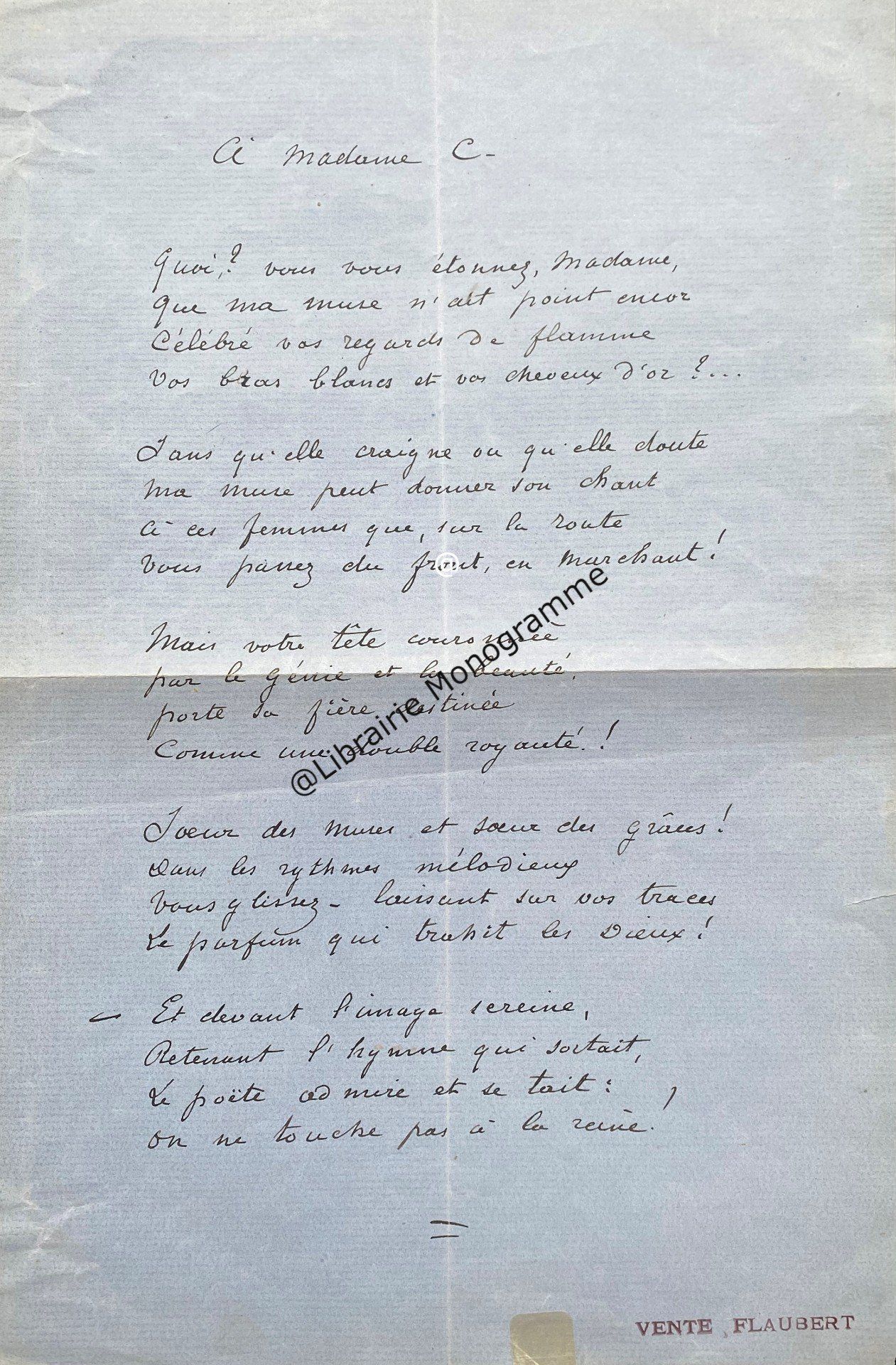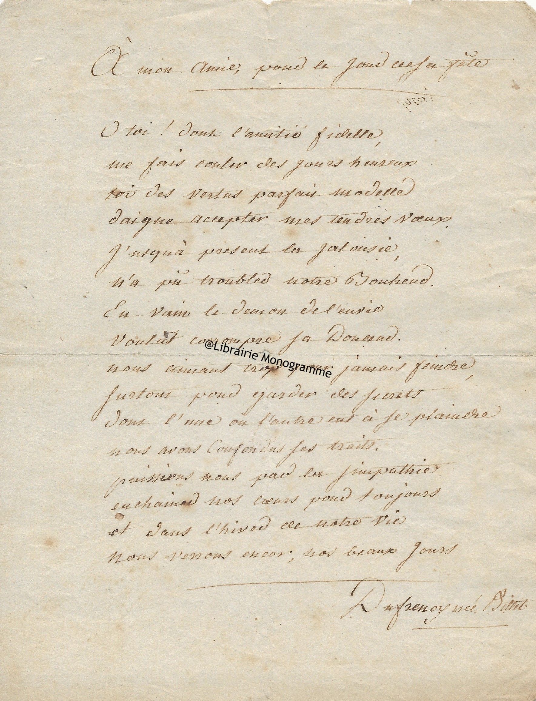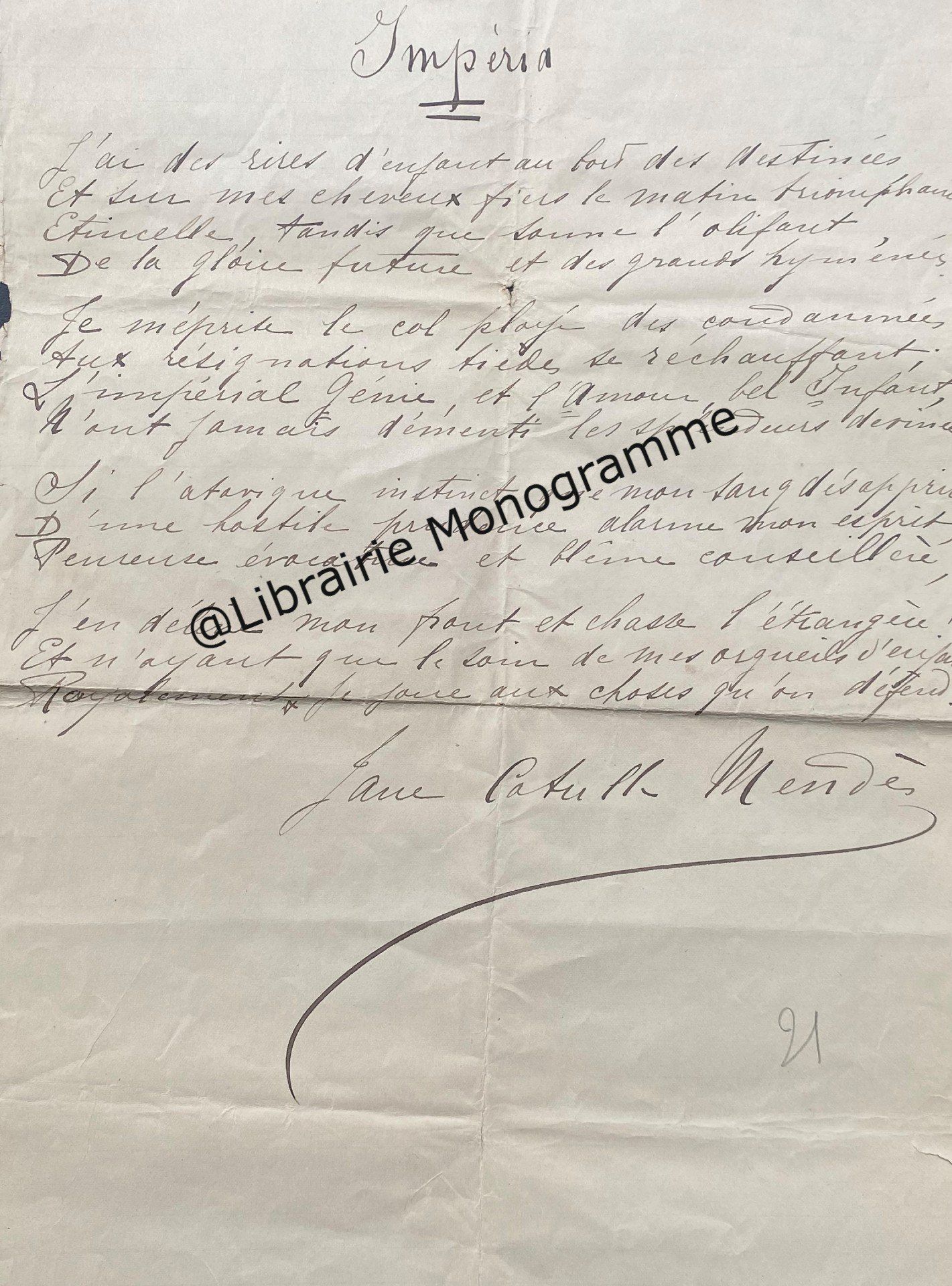 19 novembre 1874. 1 p. ½ in-8. Ce poème semble inédit.