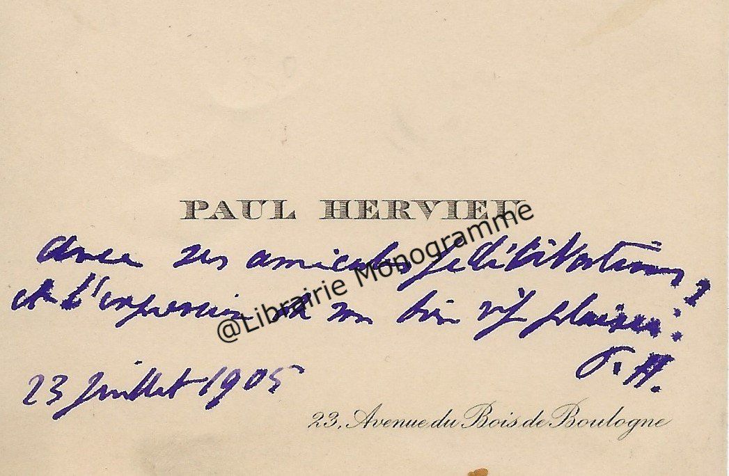 Carte autographe signée à son ami, le sculpteur français René de Saint-Marceaux (1845- 1915).