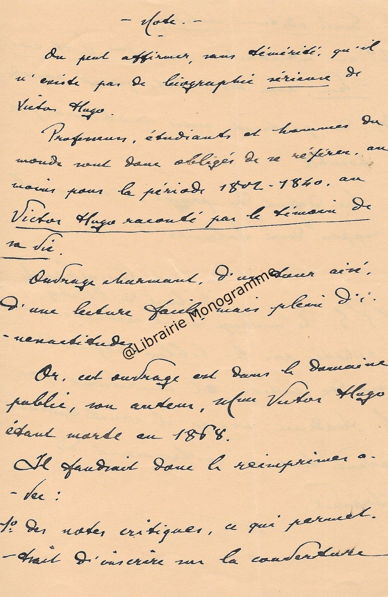 Note autographe sur page in-12.