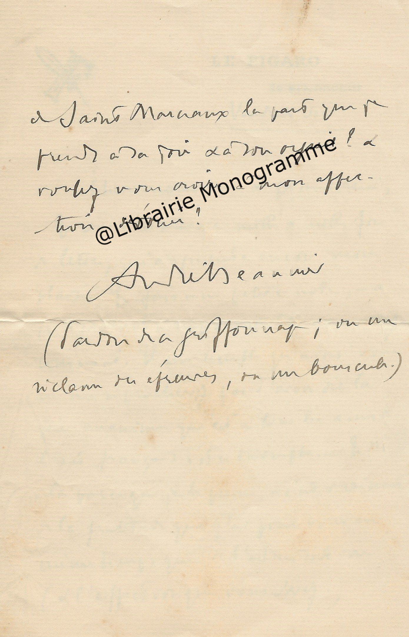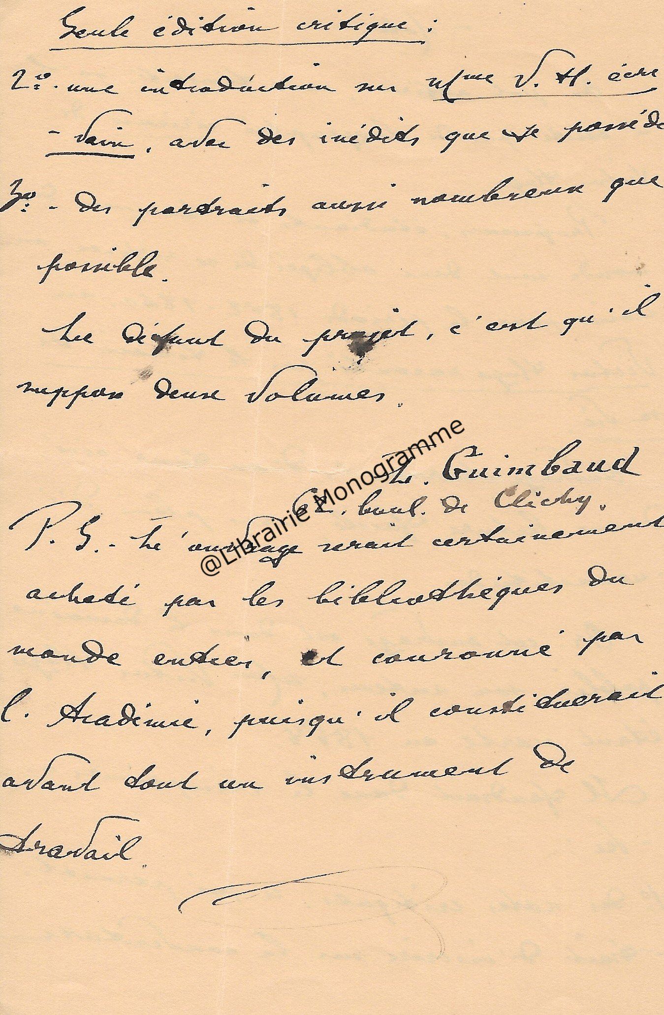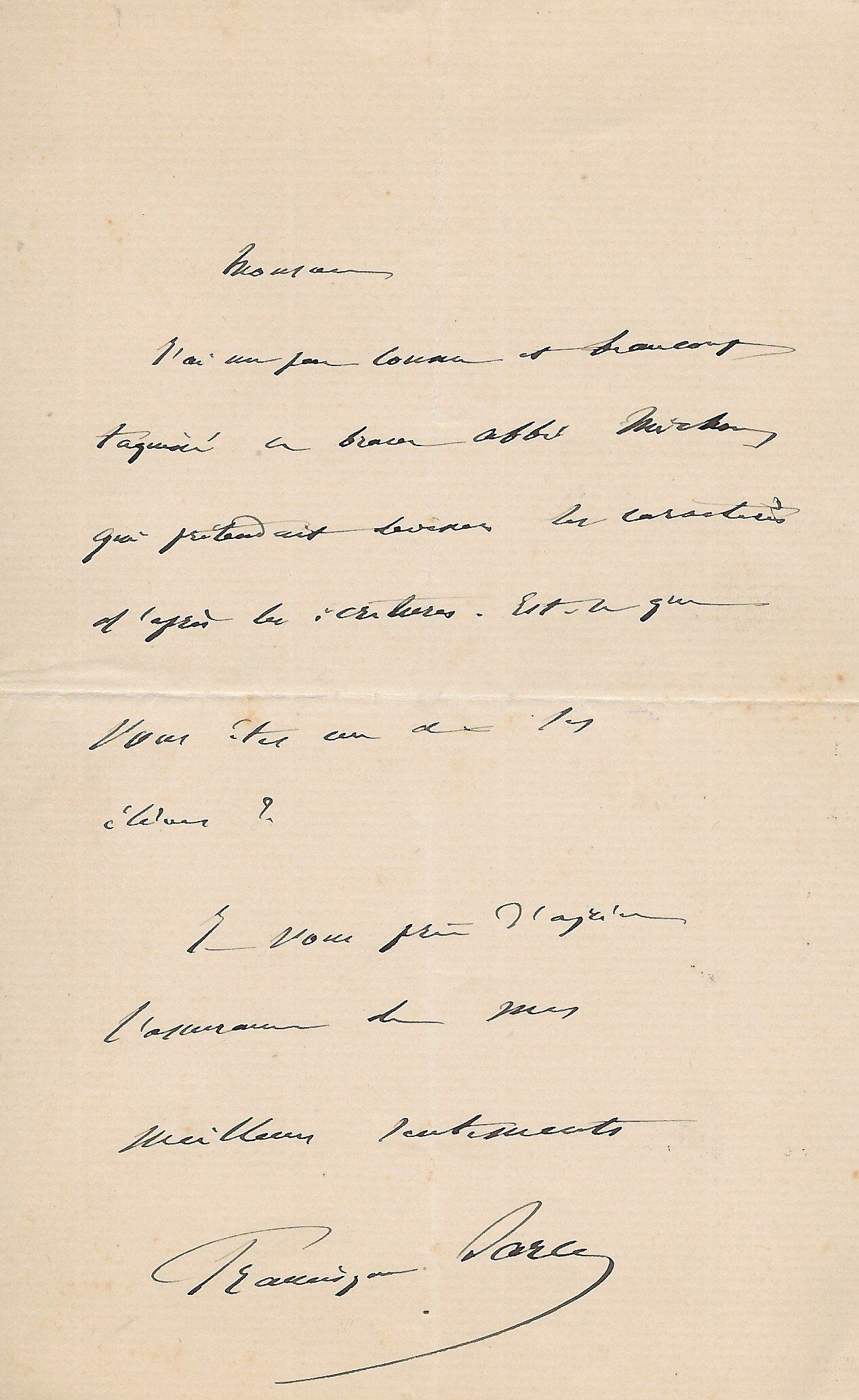 Lettre autographe signée très probablement à Maurice Tourneux [vers 1883-1884].
