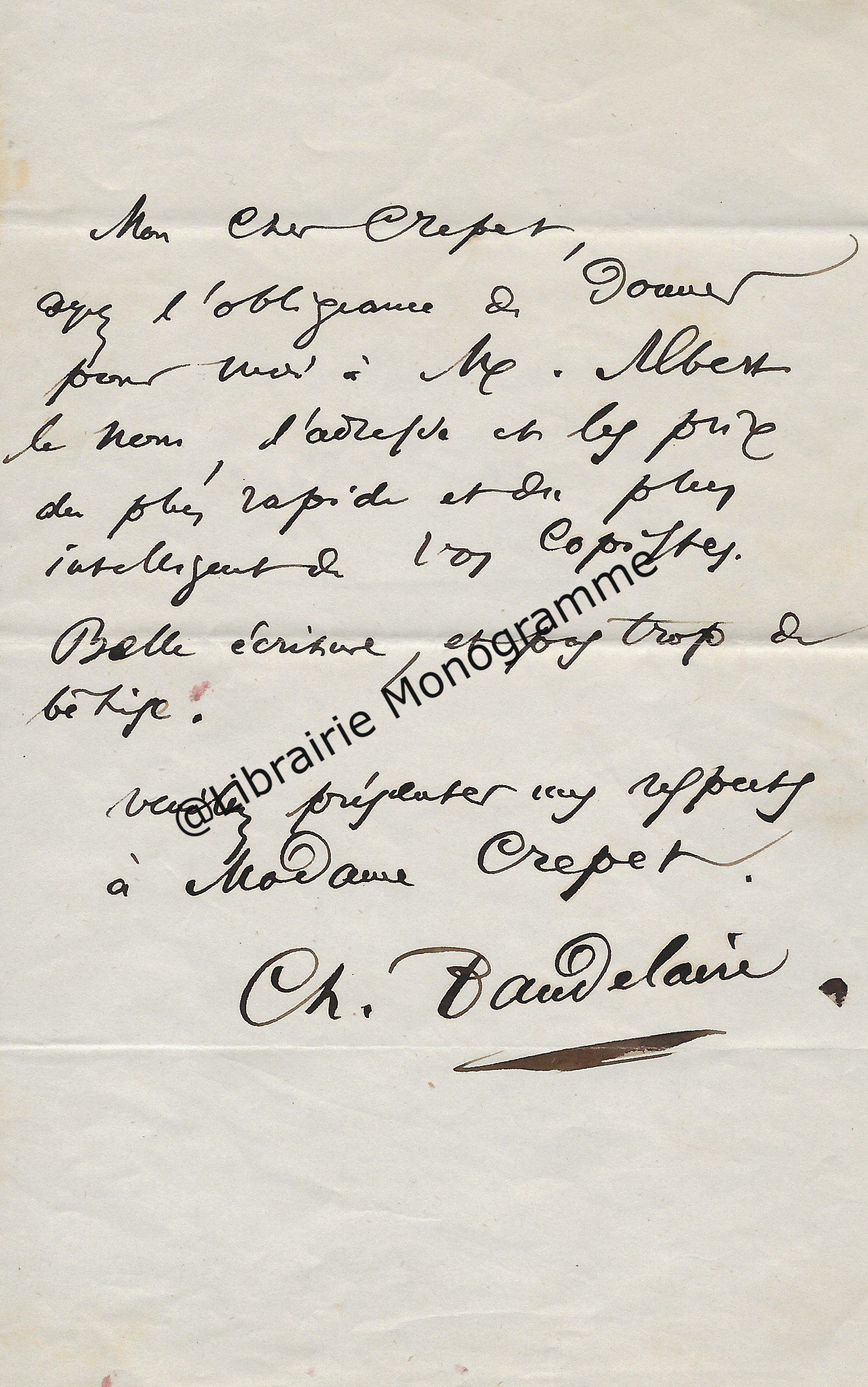 « Avez-vous révisé le compte ? Si vous pouvez en remettre le montant rectifié au caissier en jupons porteur de cette lettre, ça me fera plaisir… ».