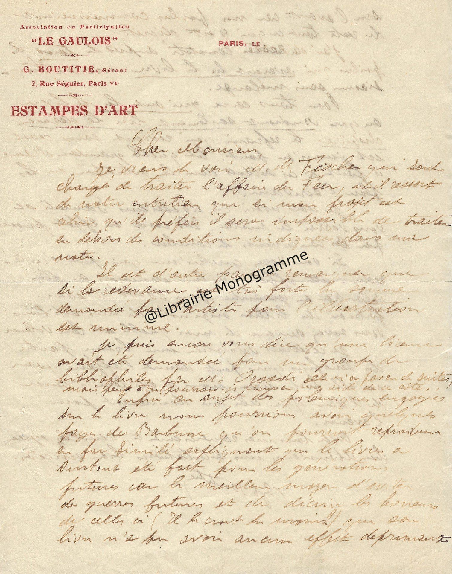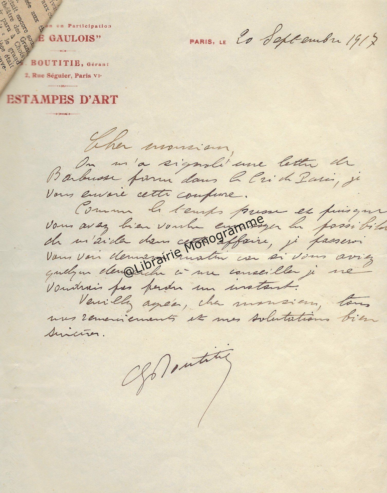 Très Intéressant ensemble composé d’une lettre autographe signée d’Henri Barbusse
