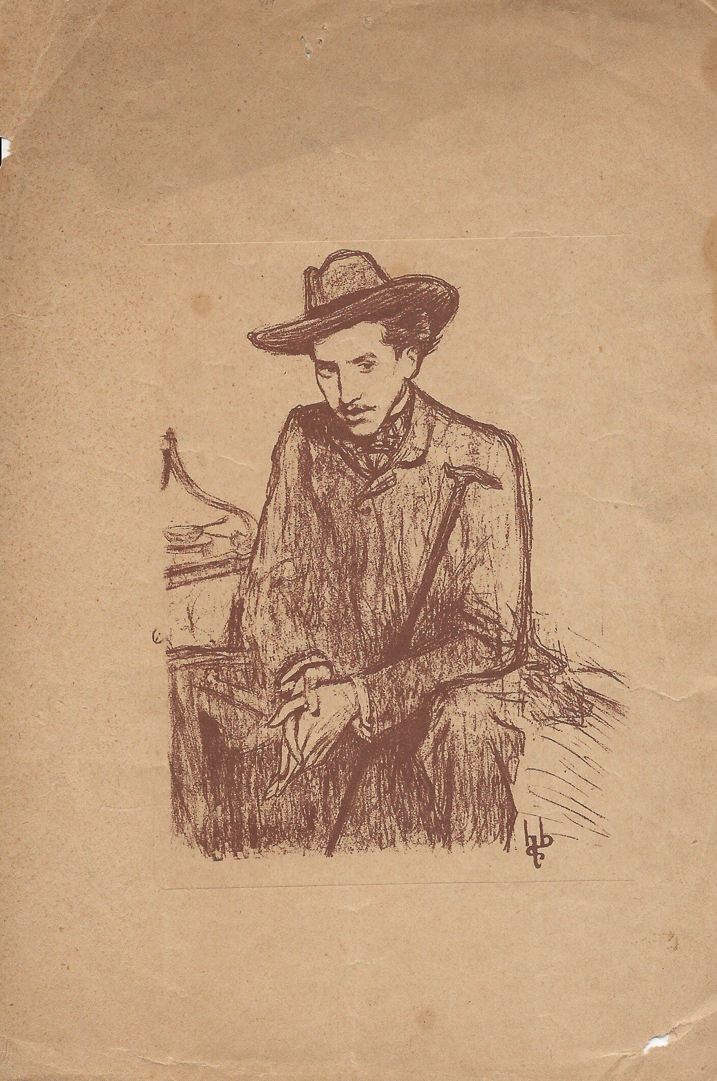 Portait avec dédicace sur carte postale, au peintre français Gabriel Drageon ((1919).