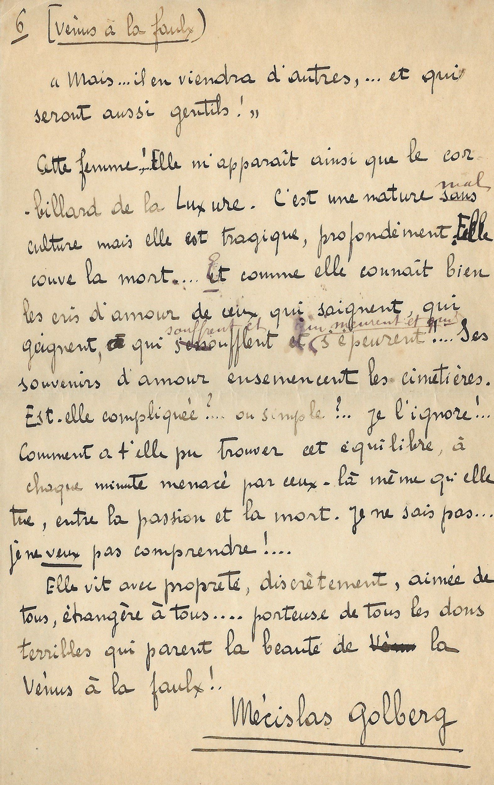 Manuscrit autographe signé avec nombreux repentirs et corrections. 30 Octobre 1950. 6 pp. in-4.
