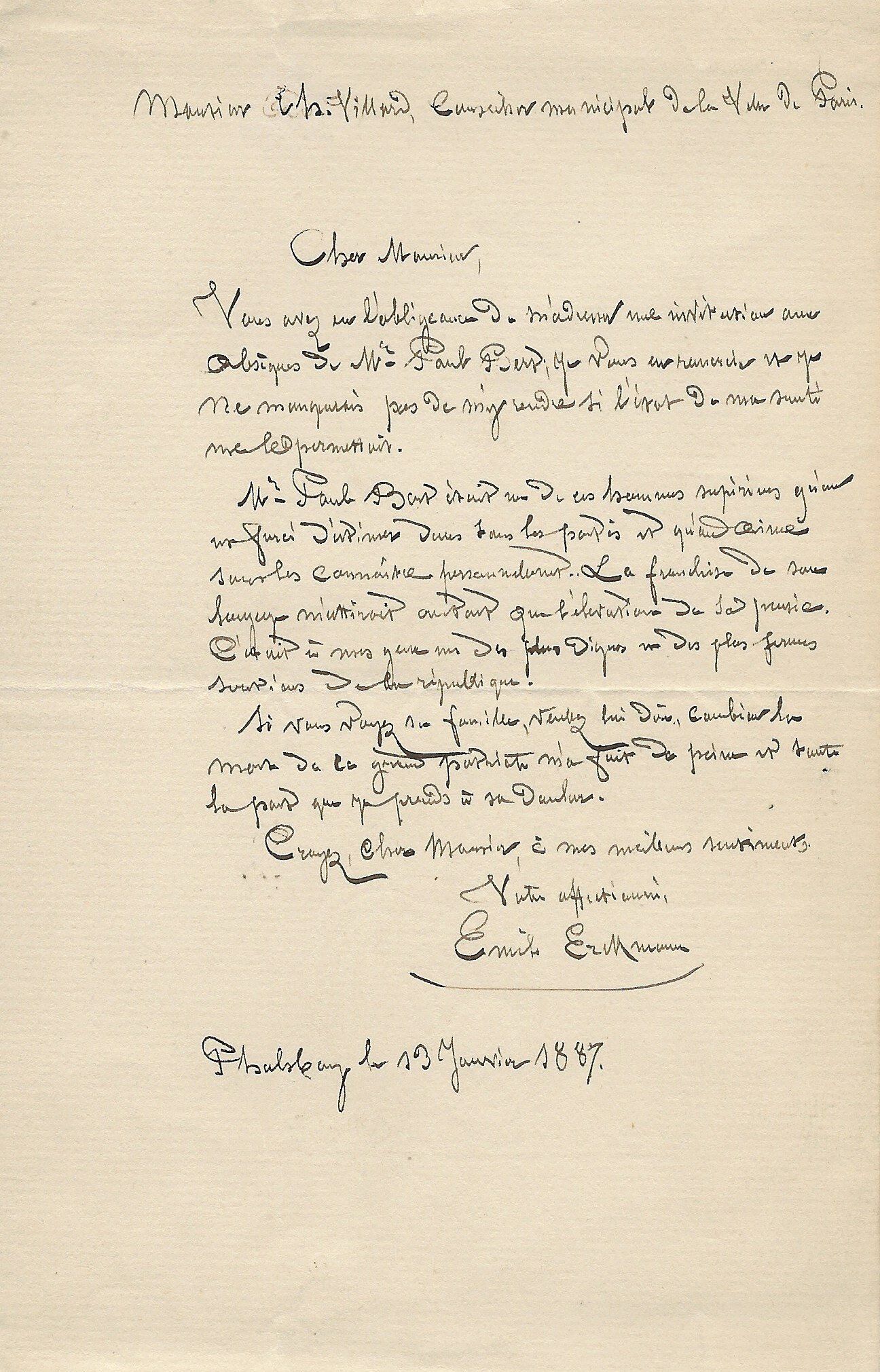 Nancy, le 24 et 29 Janvier 1875. 3 p. in-8 chaque.