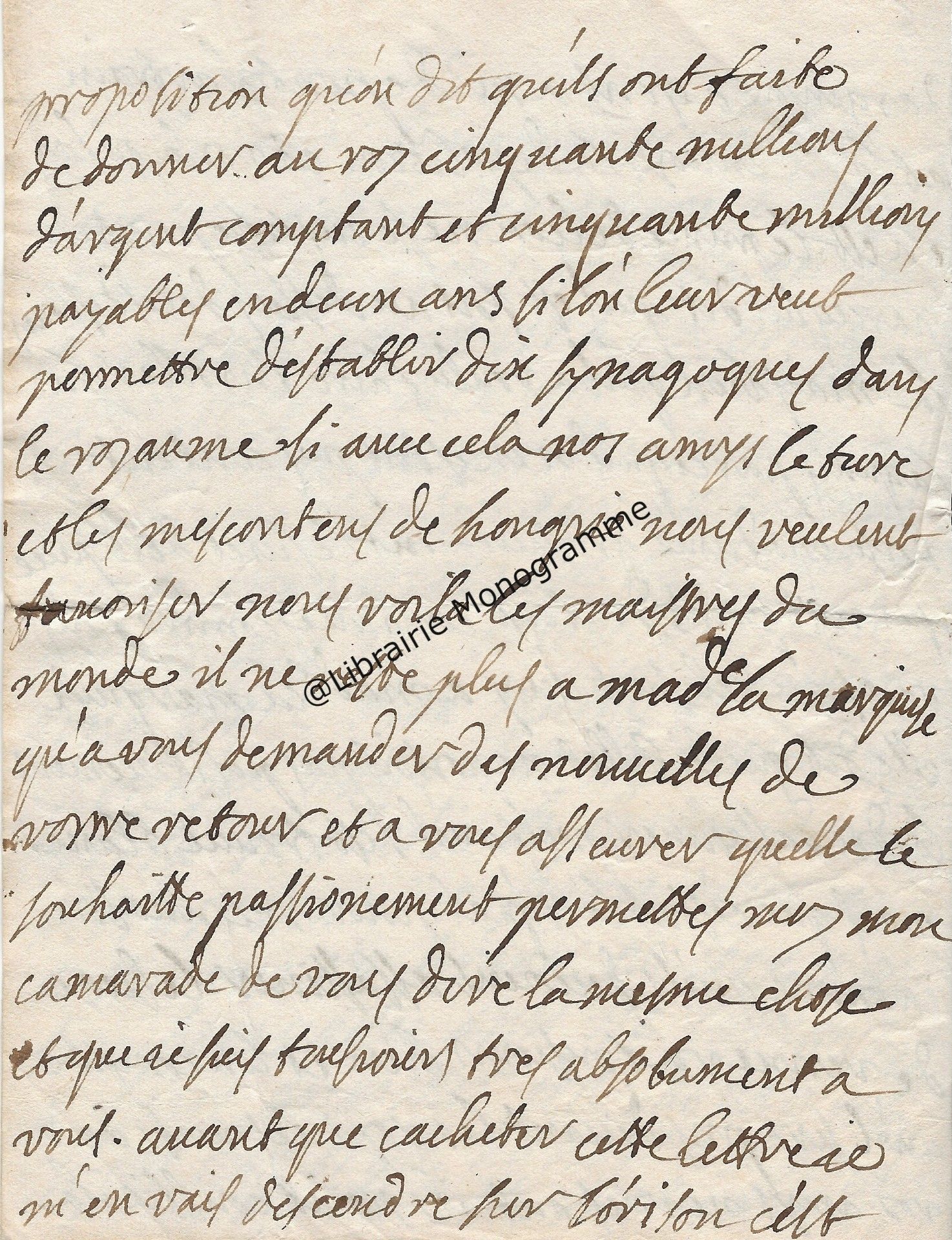 Quatre lignes de sa main très probablement relatives à l’élaboration de son œuvre monumentale publiée en 1756 : « Essai sur les mœurs et l'esprit des nations ».