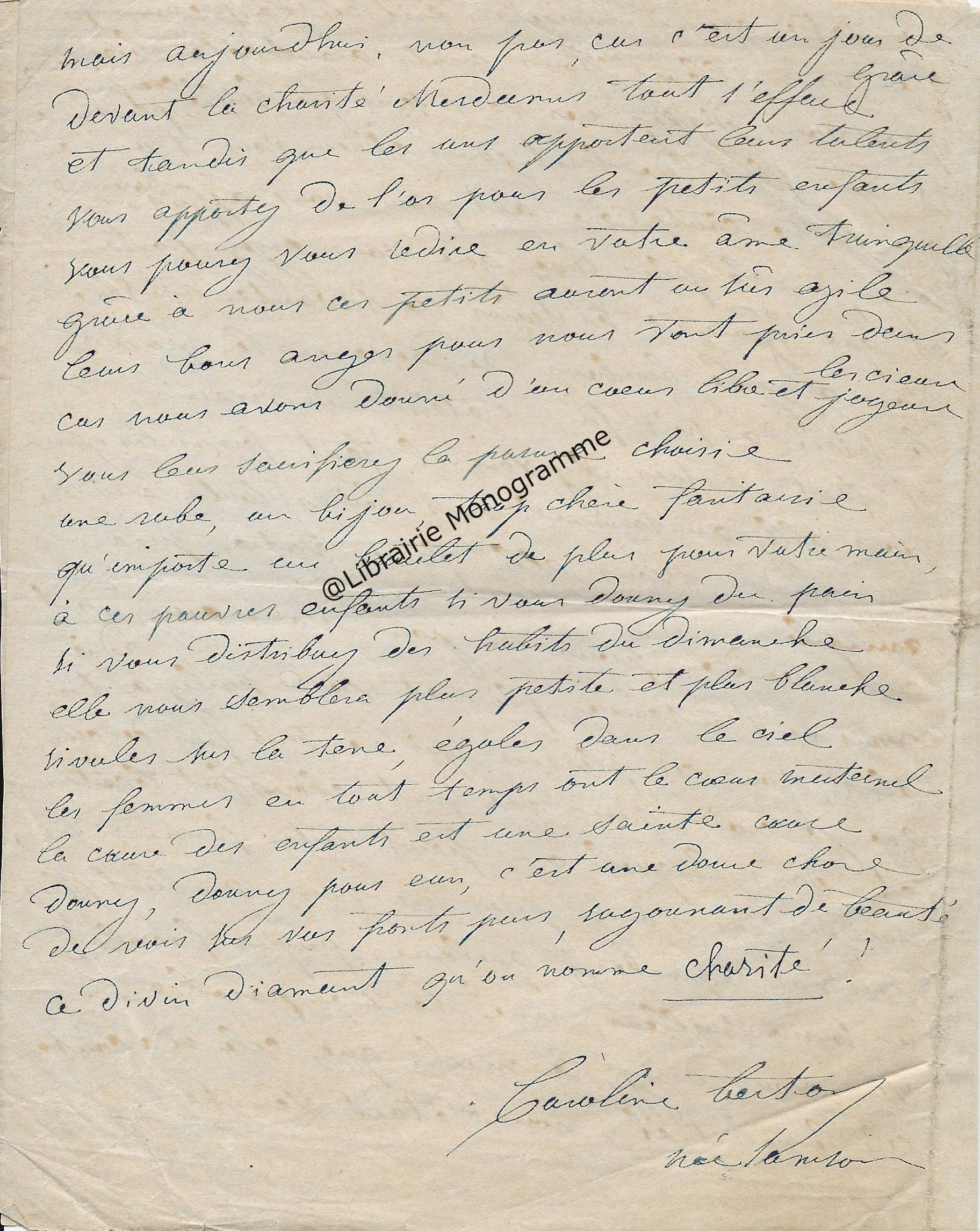 Elle l’engage à venir le rencontrer afin d’établir les prochains sujets pour La Nouvelle Revue. Elle compte plusieurs sujets qu’elle envisage, en particulier sur sa manière de travailler, sur Diderot, sur le divorce, sur l’école des jeunes demoiselles etc…. « Il faut que nous convenions de la forme qui relèvera et présentera les différents sujets …».