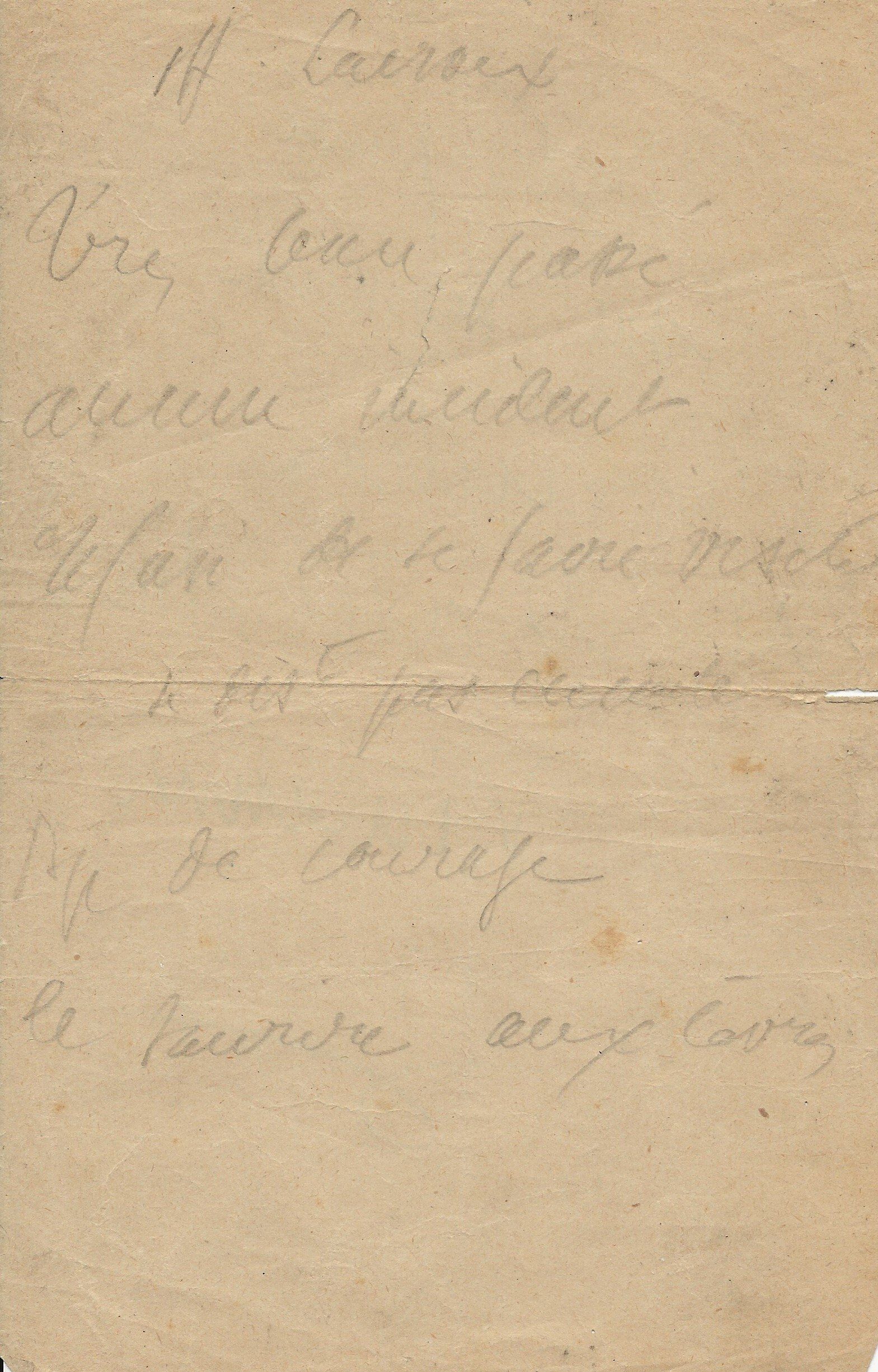 Elle lui apprend que depuis sa dernière visite, sa santé s’est dégradée. « J’ai été prise de crises d’étouffements qui ont été graves et qui inquiète le médecin pour l’avenir. Je suis dans un tel état de faiblesse que je quitte ma chaise que pour aller déjeuner après quoi je rentre et ne ressort plus… ».