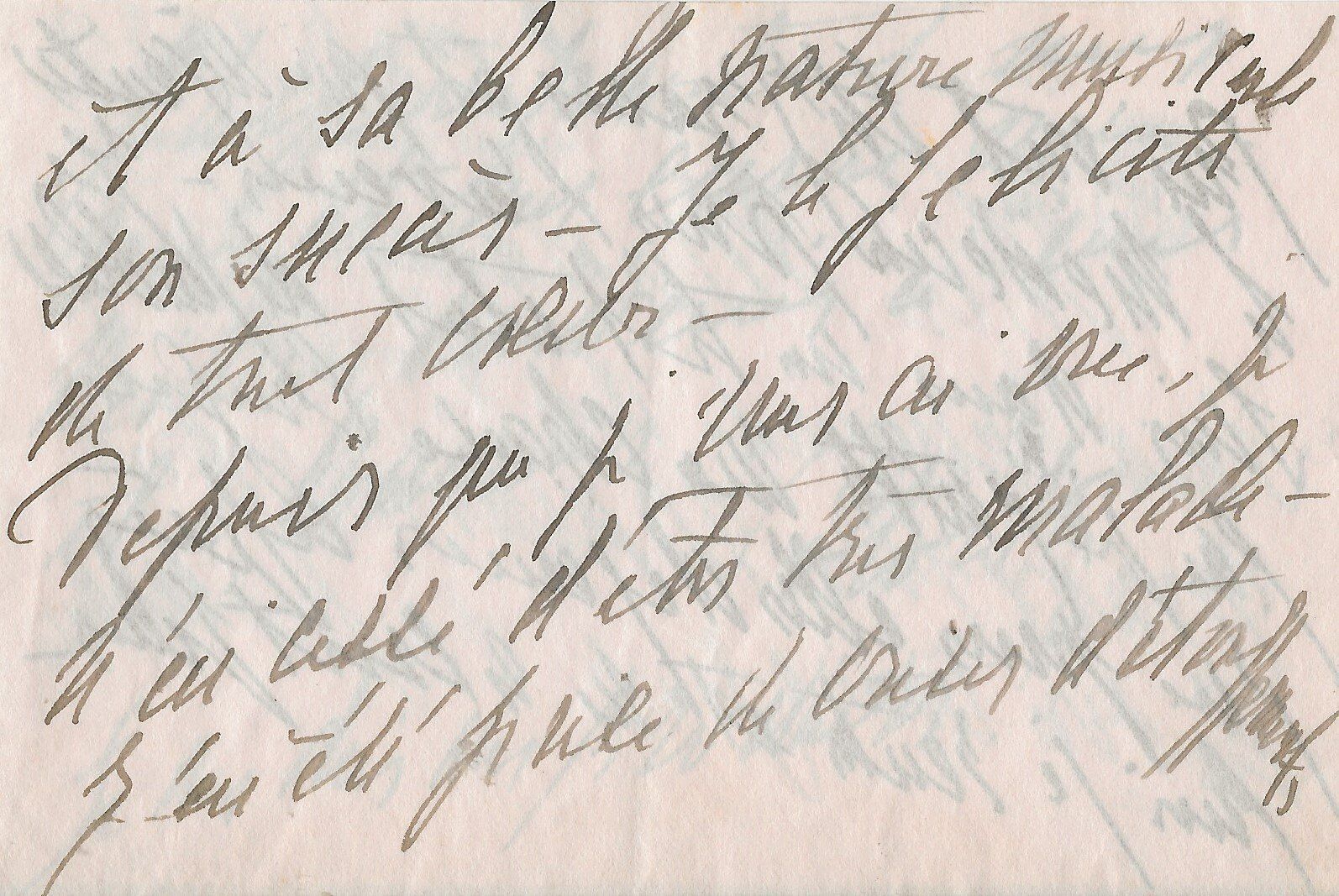 On joint une seconde lettre autographe signée datée du 5 mars 1896 au même, relative à la demande d’intervention pour une jeune fille, « ouvrière de son état, qui aurait besoin d’entrer quatre ou cinq jours, dans votre service à la Charité, pour une petite opération qu’elle vous expliquera… ».