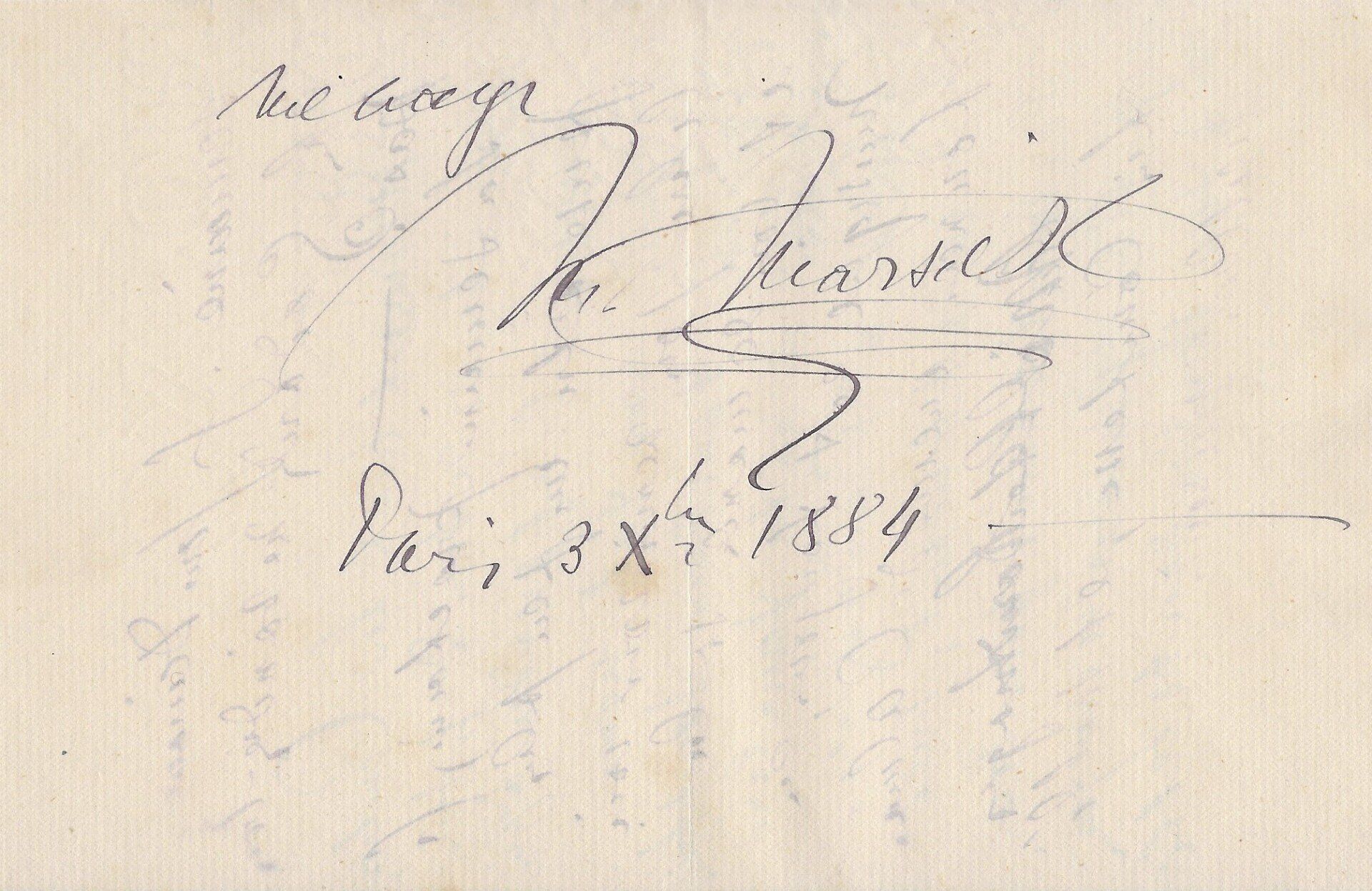 Lettre autographe signée à sa chère amie, Mme [Marguerite] Crauk, l’épouse du Sculpteur Gustave Adolphe Crauk. Paris,