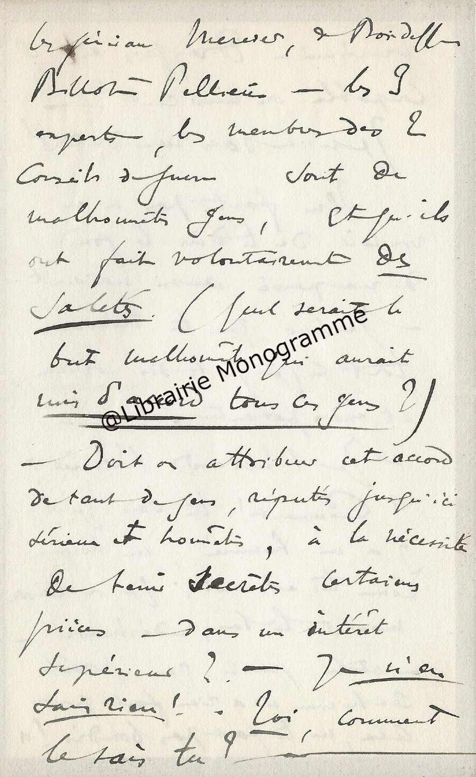 « Vous m’obligeriez beaucoup, si vous vouliez m’envoyer quelques pages de mon rapport pour en commencer la copie. Demain, à trois heures j’irai vous voir au ministère… ».