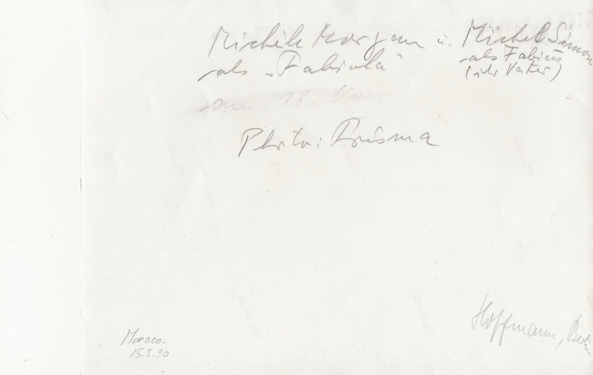 Il se trouve vivement intéressé par la proposition évoquée par son correspondant et se réjouit de faire rapidement sa connaissance. Il lui signale plusieurs appels téléphoniques « en vain », qui ne lui ont pas permis d’entrer en relation plus vite avec lui. « Je suis chez moi pour une semaine encore, ensuite près d’Aix en Provence pour y tourner un film pendant un mois et demi… ». Dans la seconde carte, Michel Simon interroge cette demoiselle, espérant la voir rapidement. « J’ajoute cinq francs pour les envois est-ce assez ».