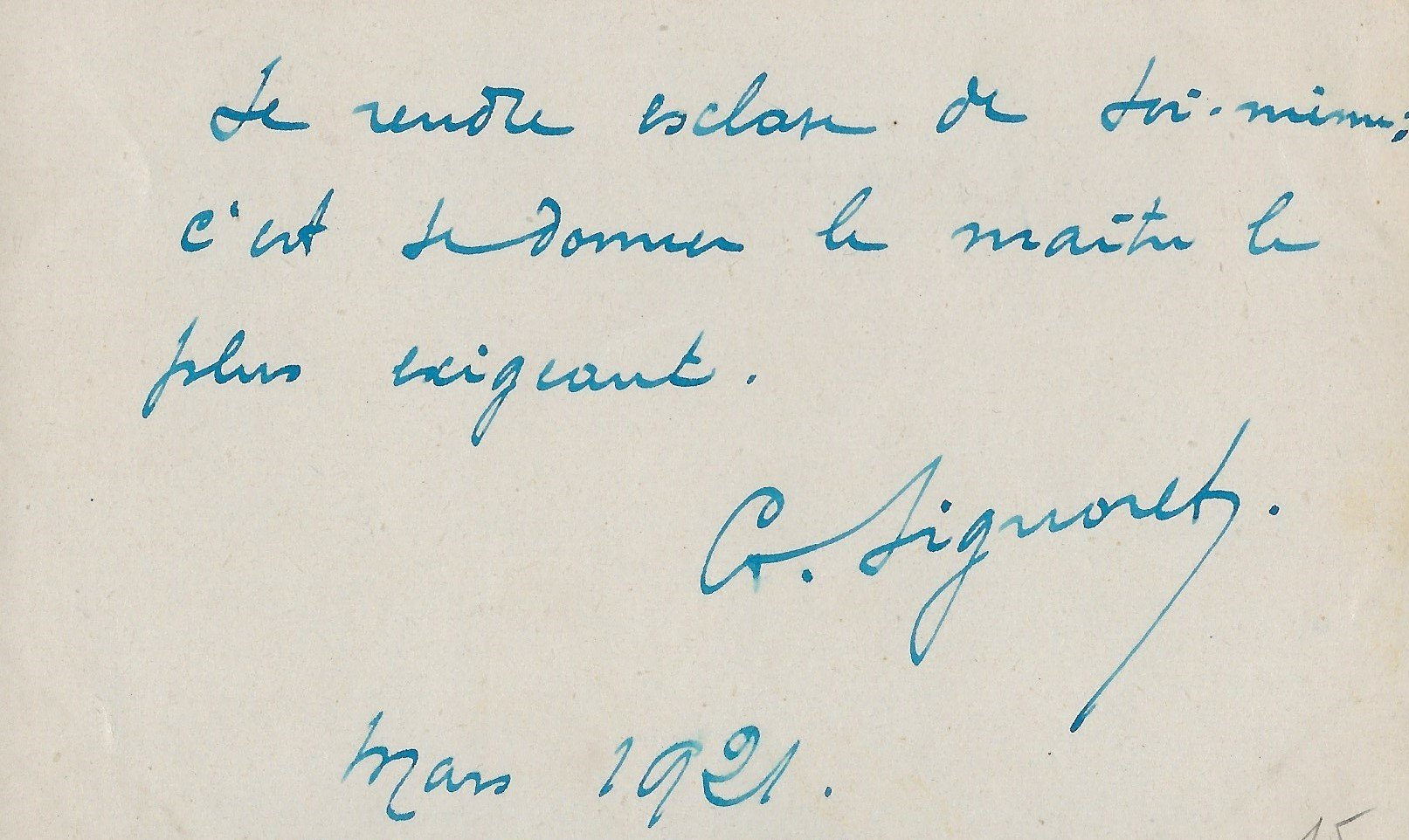 Il a bien reçu son « pneu » adressé à mon domicile de Paris, qui l’a rejoint à celui de Strasbourg, « rue Ehrmann, où je suis encore pour une dizaine de jours à préparer ma saison prochaine. Je suis donc empêché et très ennuyé de ne pouvoir vous rencontrer. Mais comment faire ? Si ce que vous avez à me dire, peut s’écrire, je me ferai un plaisir d’y répondre par courrier… ».