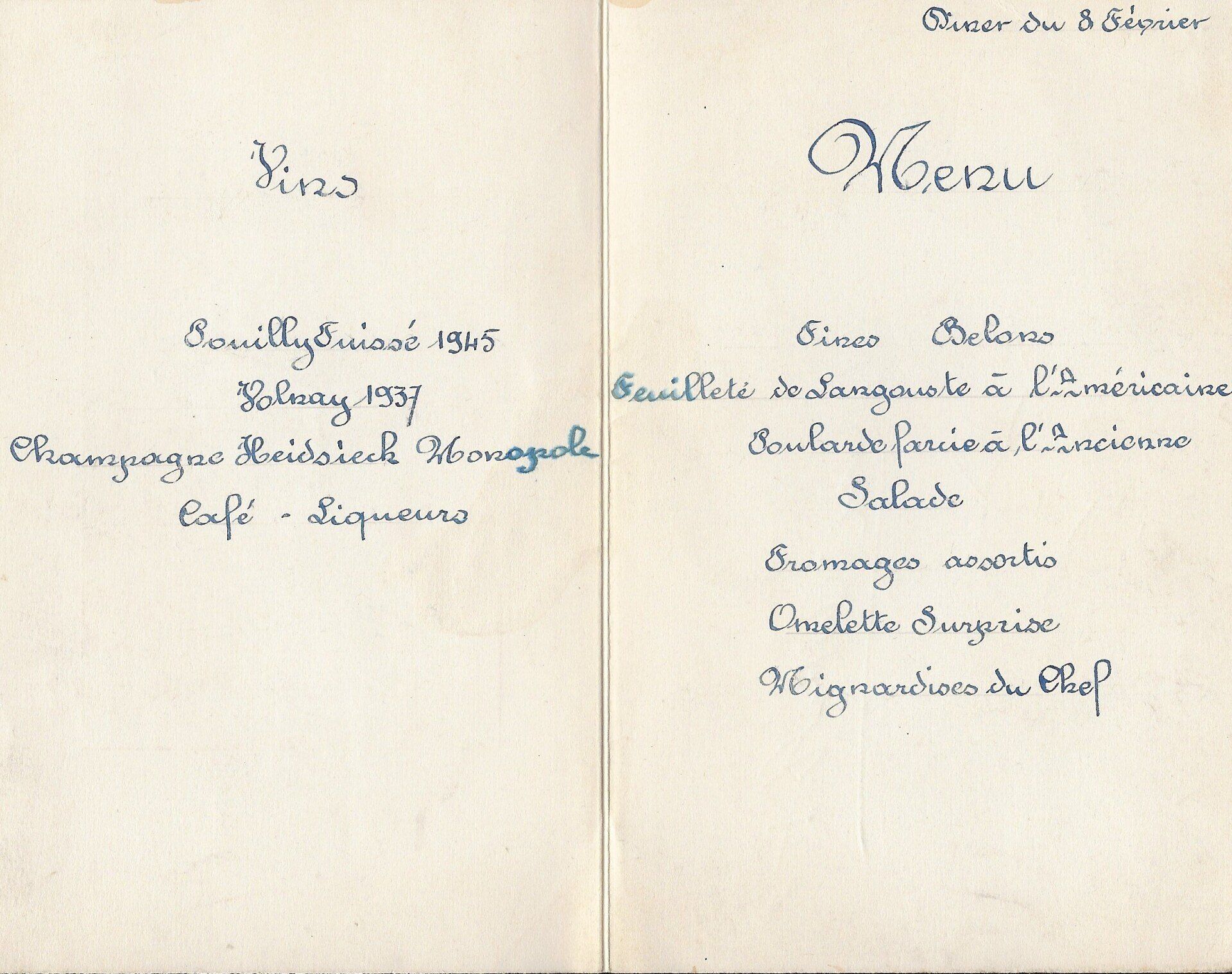 Maurice Utrillo, signature autographe au dos d’un menu probablement bien arrosé.