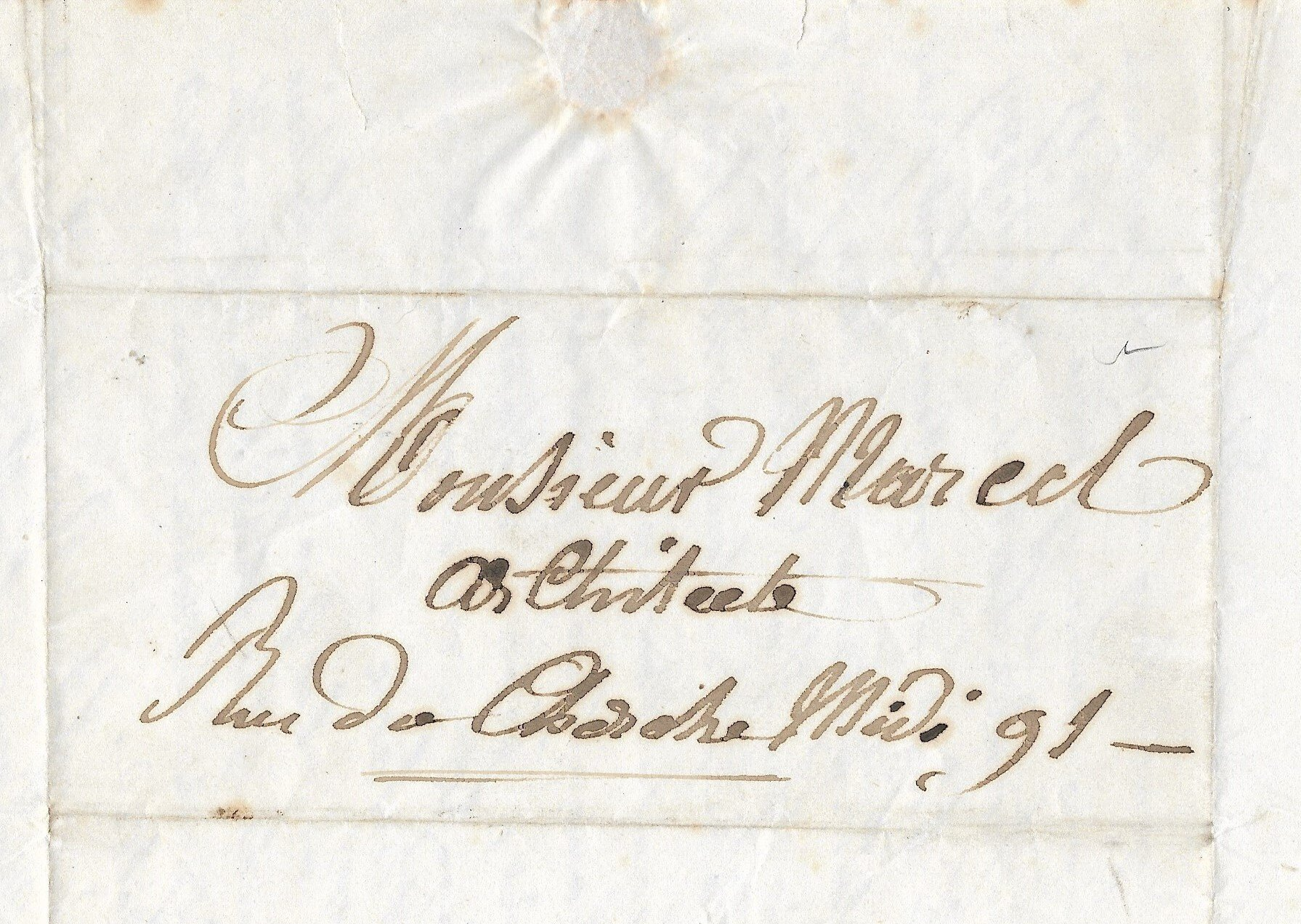 Paris, 15 mars 1838. 1 pp. petit in-8. Adresse et marques postales.